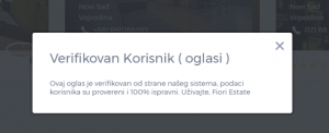 Svi oglasi koji imaju ovu oznaku, su označeni kao ispravni, tj. podaci korisnika, kao što su slike, opis oglasa, broj telefona su 99% ispravni i provereni.